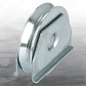 Galet acier 100 rainure en V avec platine et roulement simple - Art 417